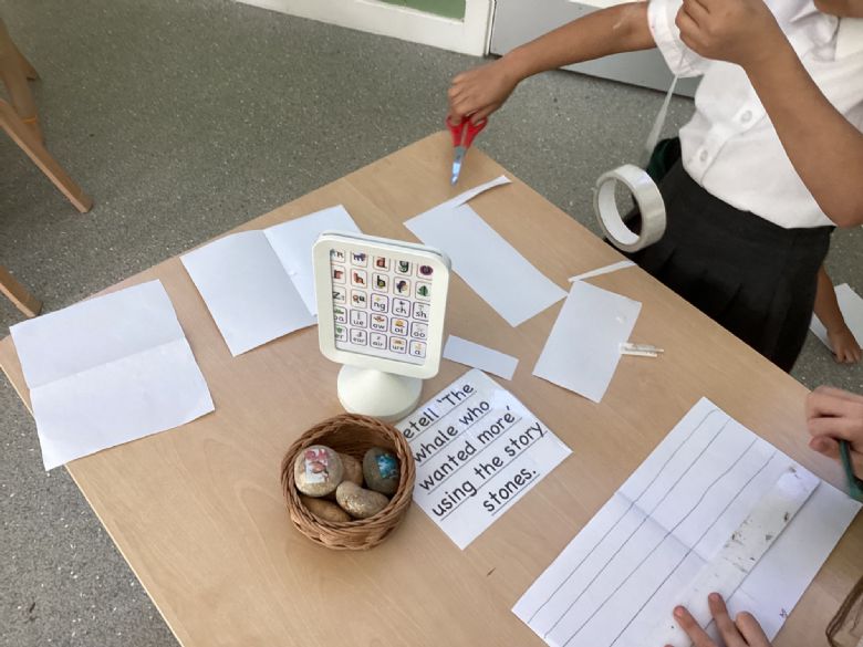 English this week, consisted of continuing with our picture book, 'The Whale Who Wanted More.' We used this in exploring sentence structures by learning about actions and subjects and the importance of capital letters and full stops.
