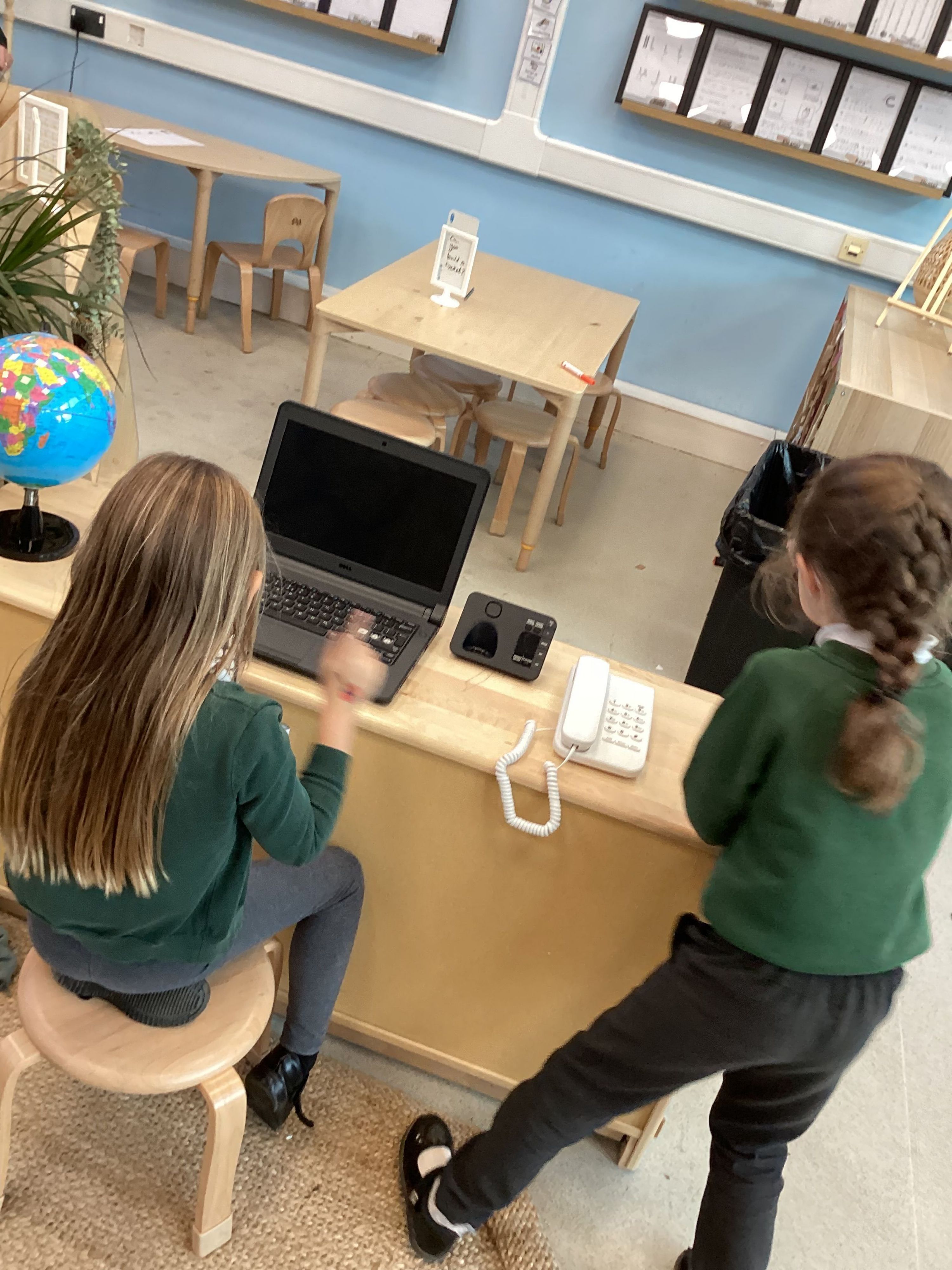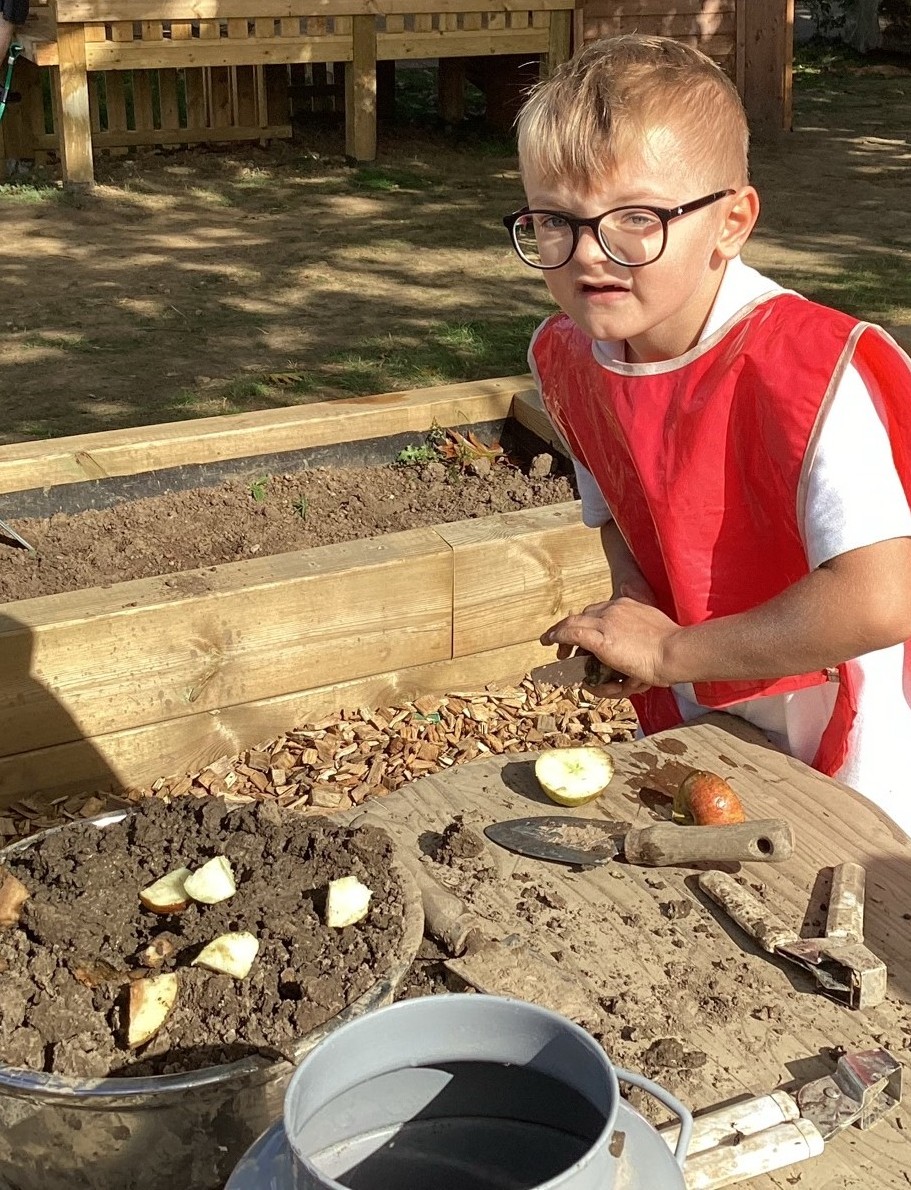 Writing leaflets, looking at globes and mountains (human features) in the sandpit.