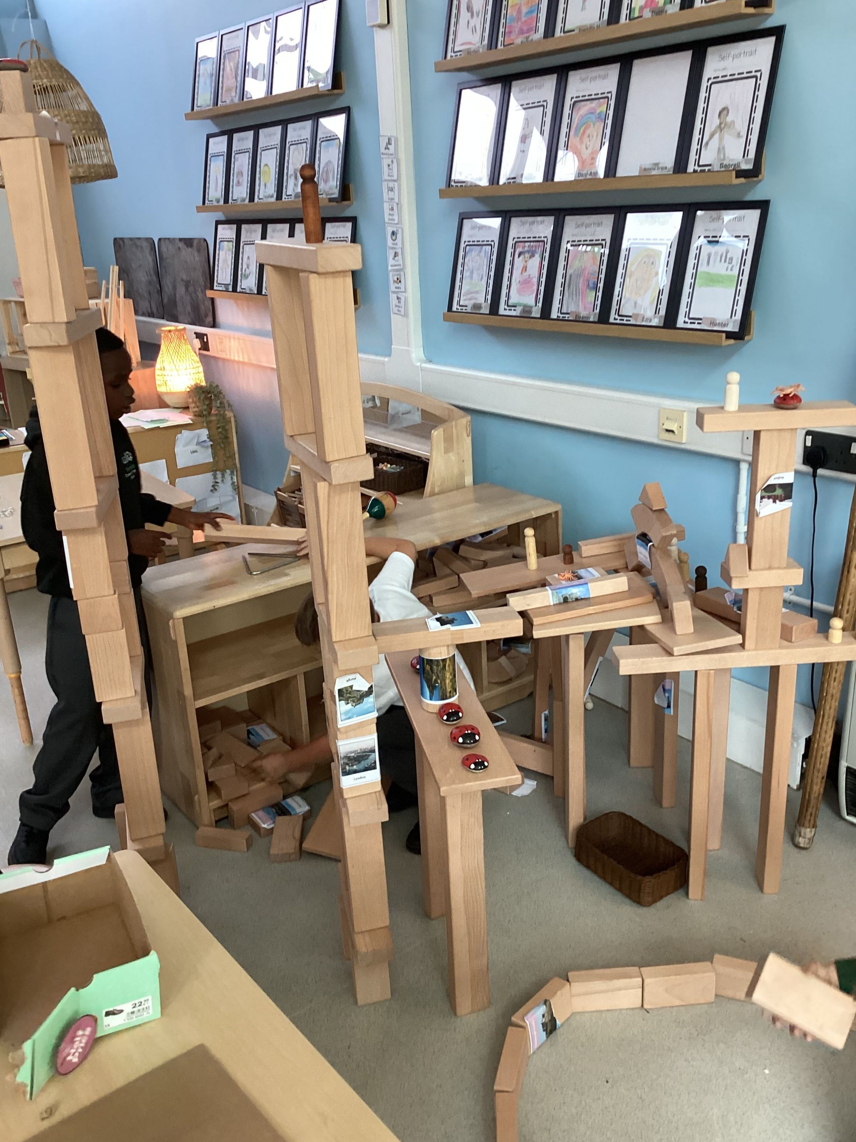 Children building their own human features (houses) and measuring the physical features in our garden.