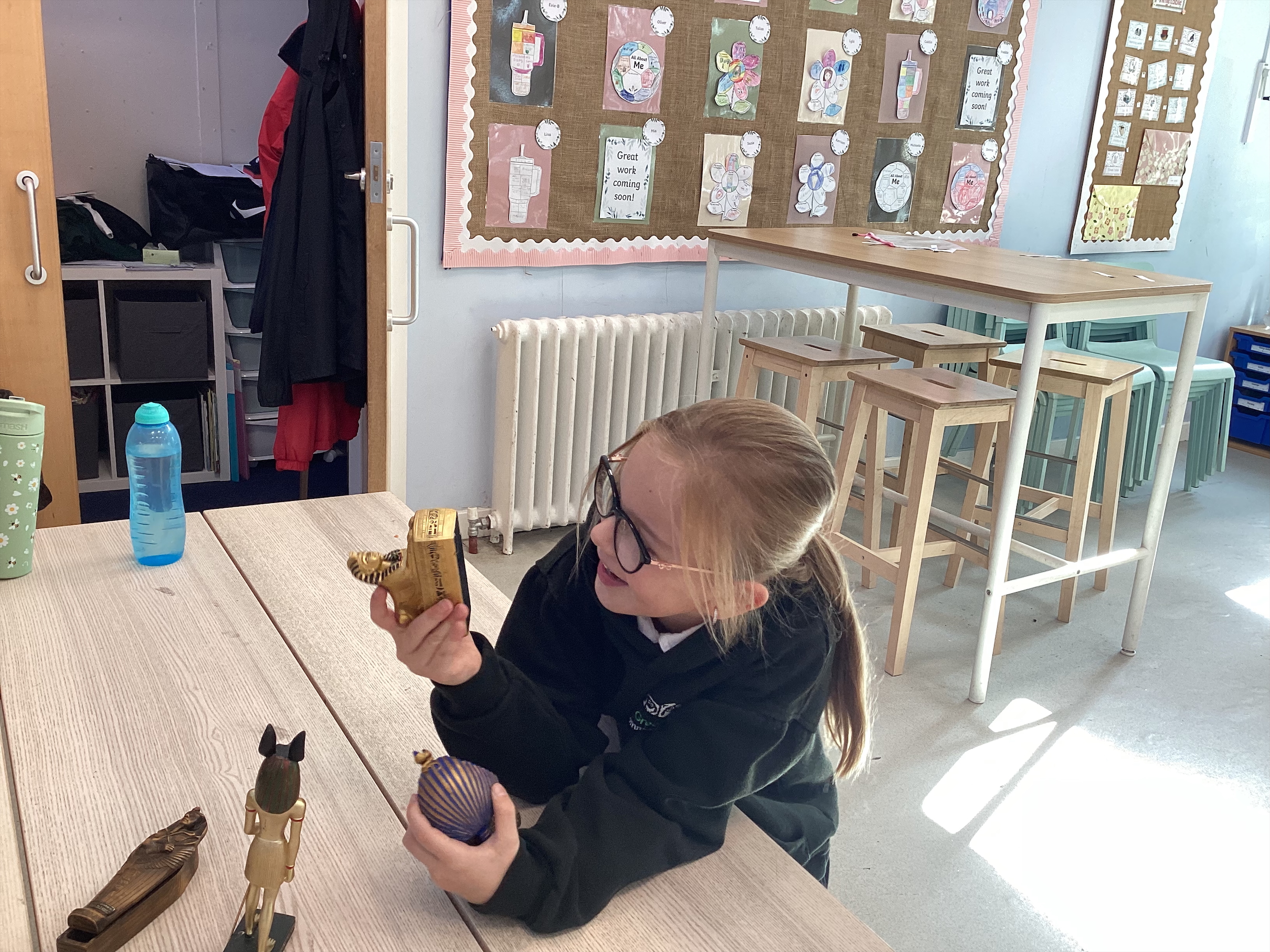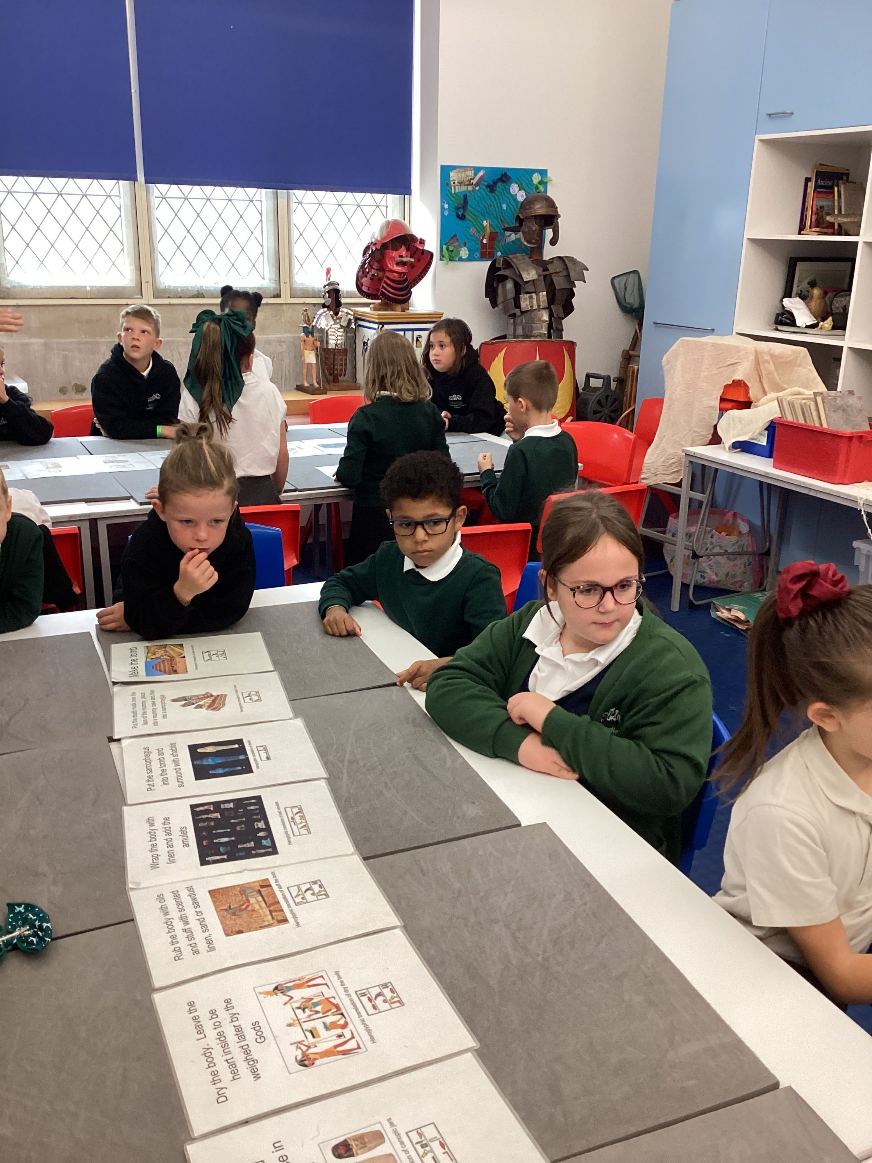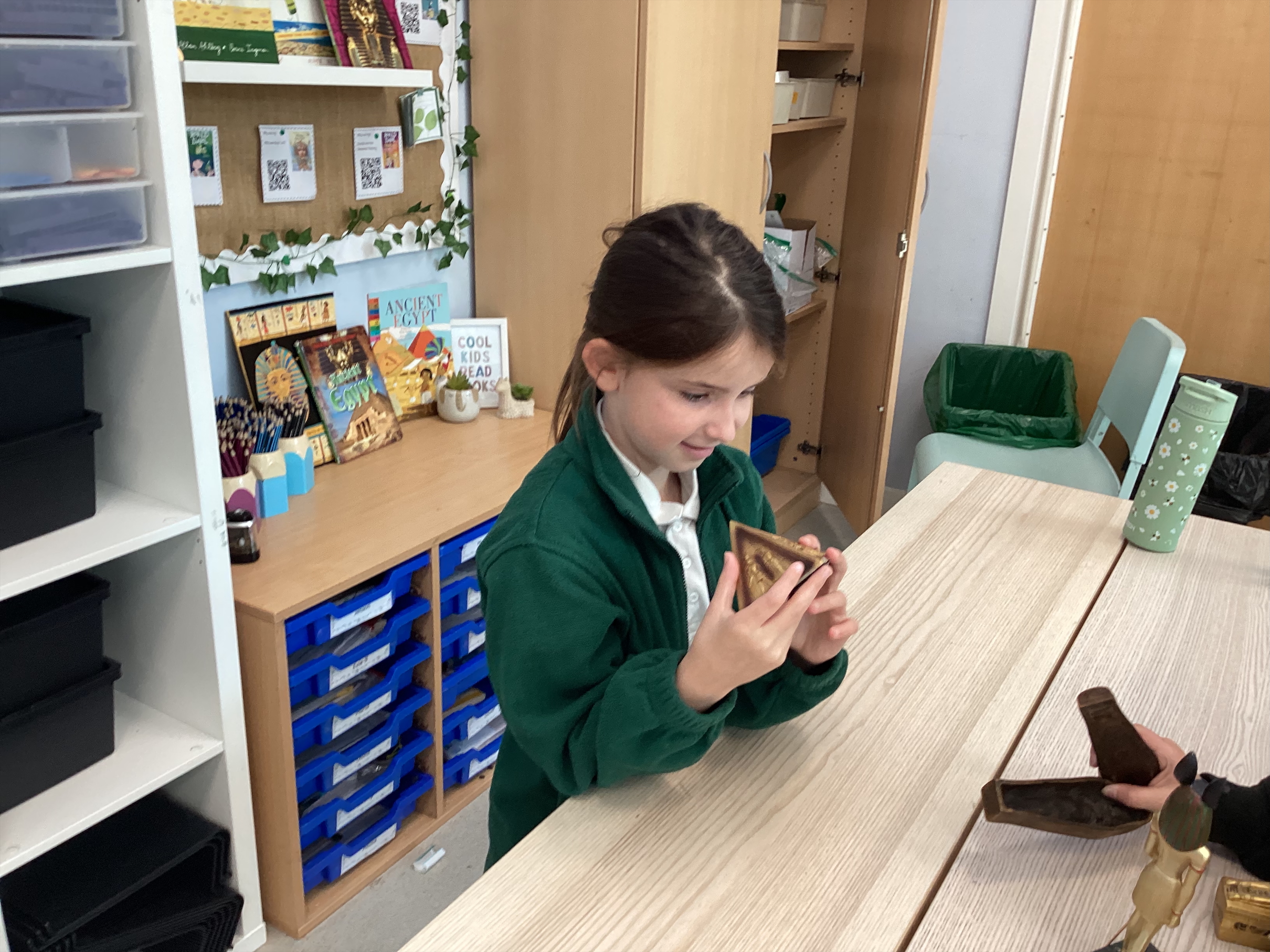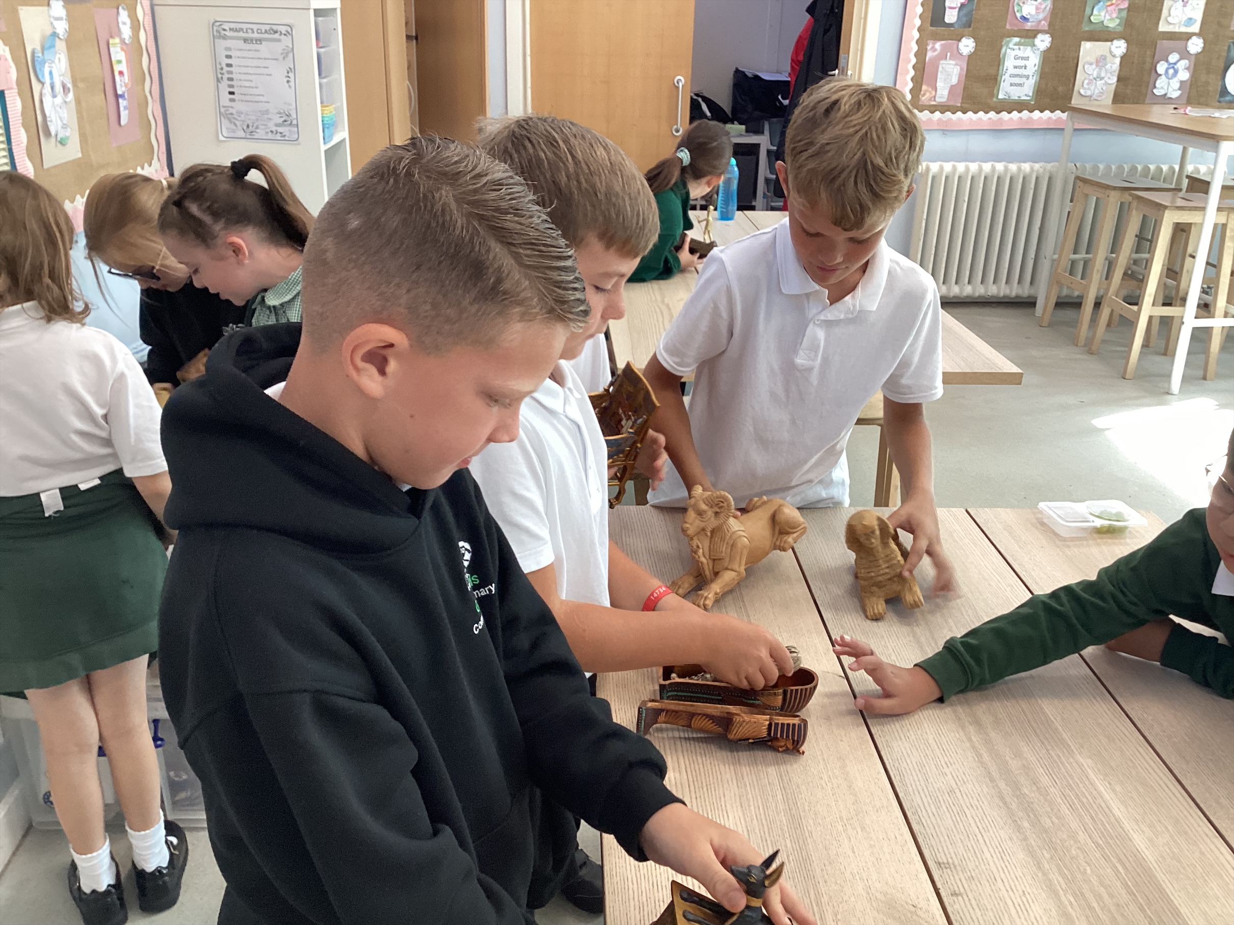 Maples exploring the artifacts and creating a timeline for the Egyption period.