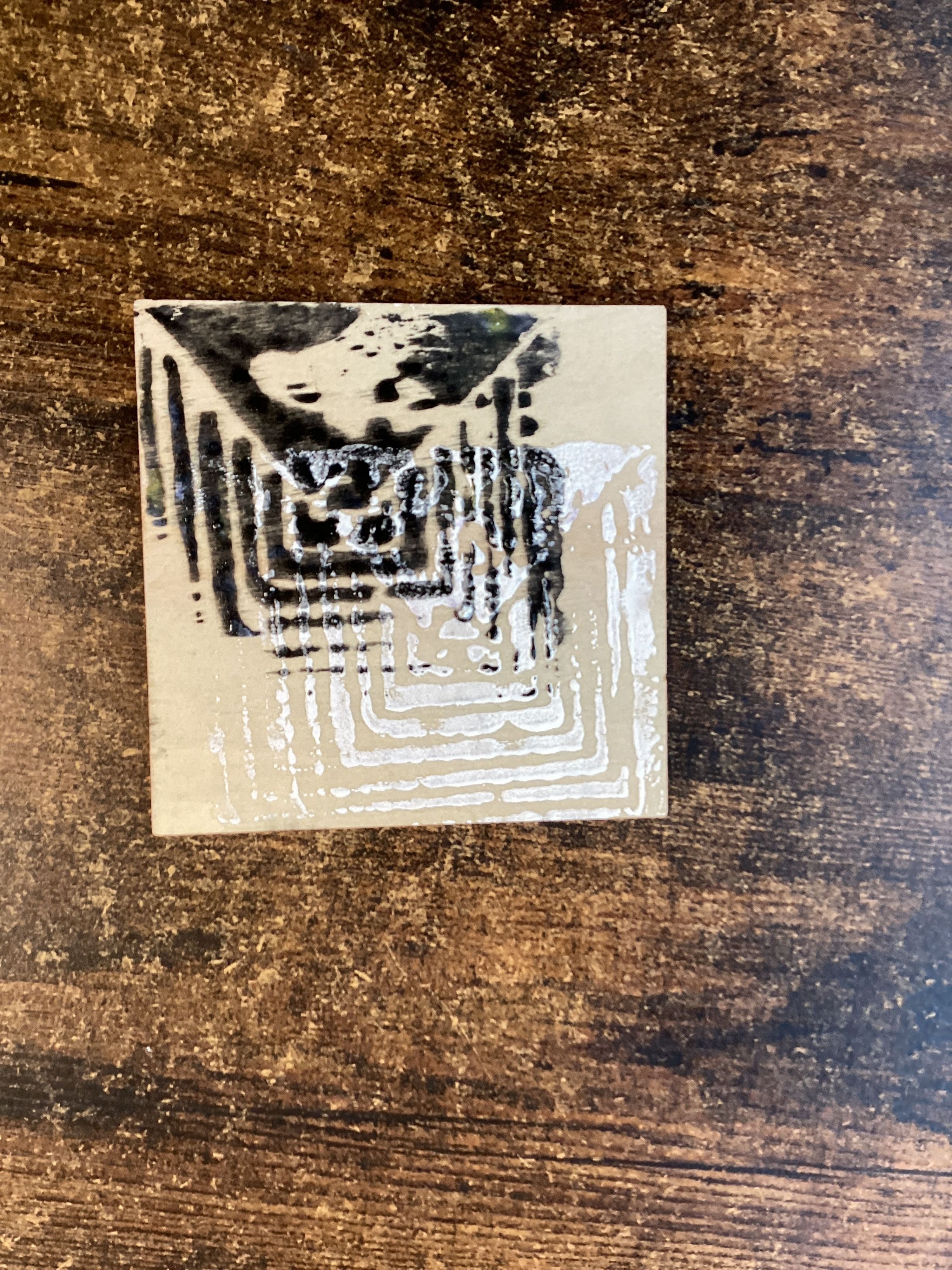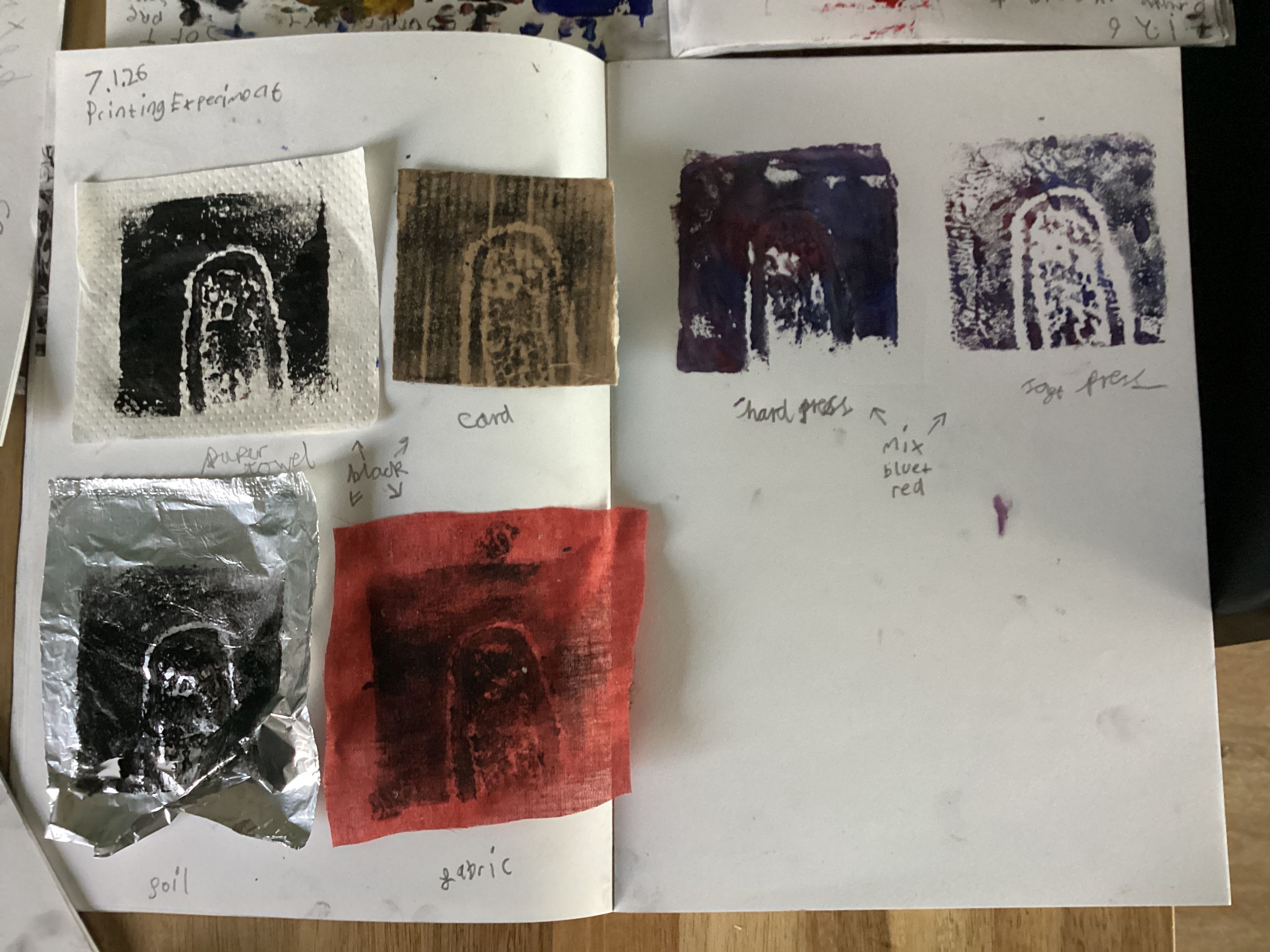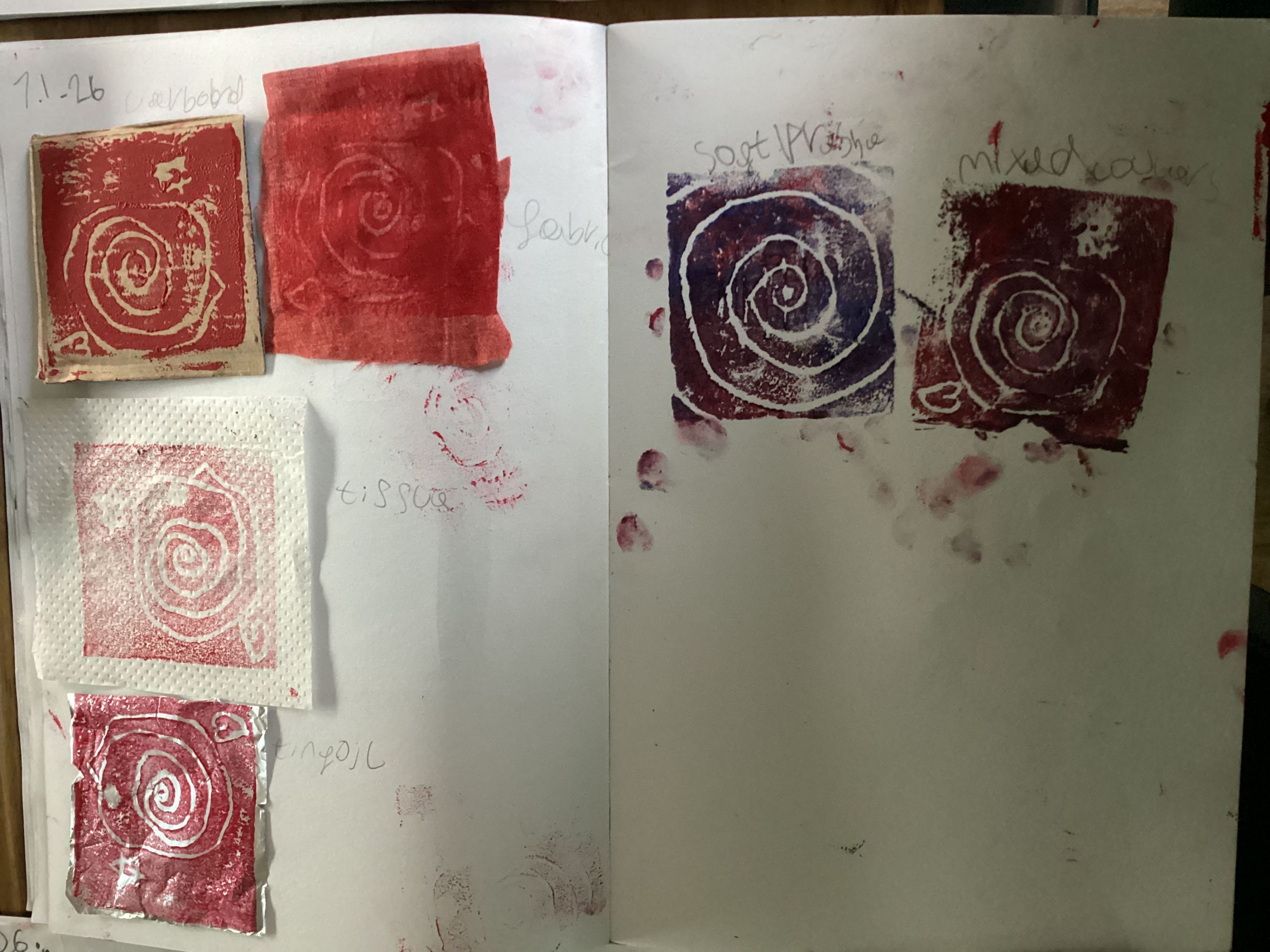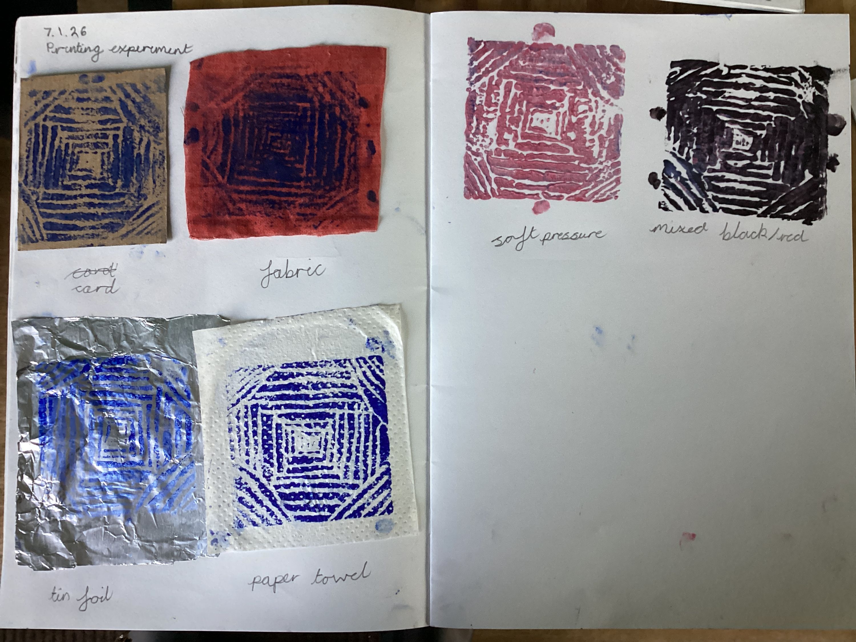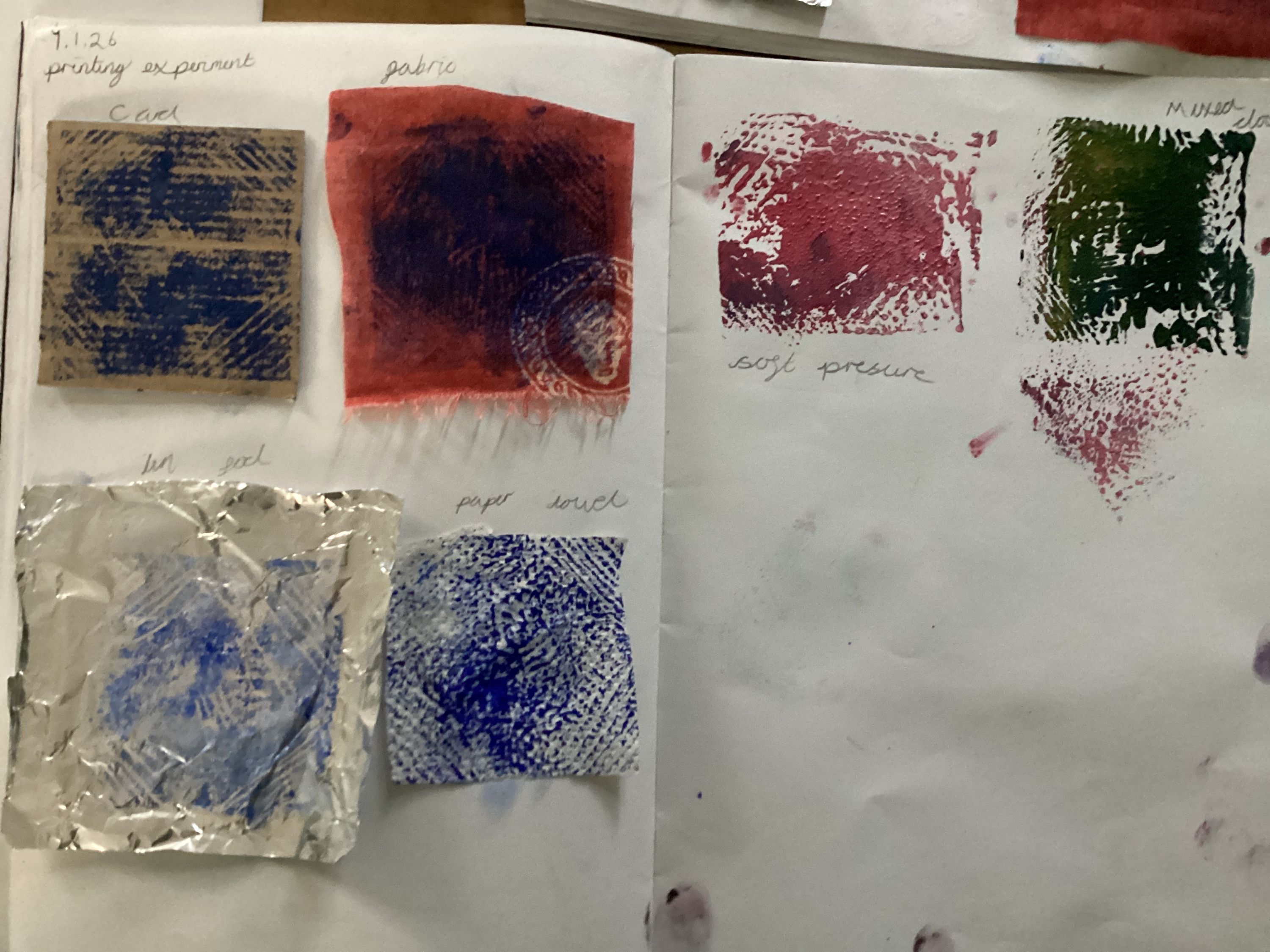 We then experimented printing on a range of materials and using different colours and pressure.
