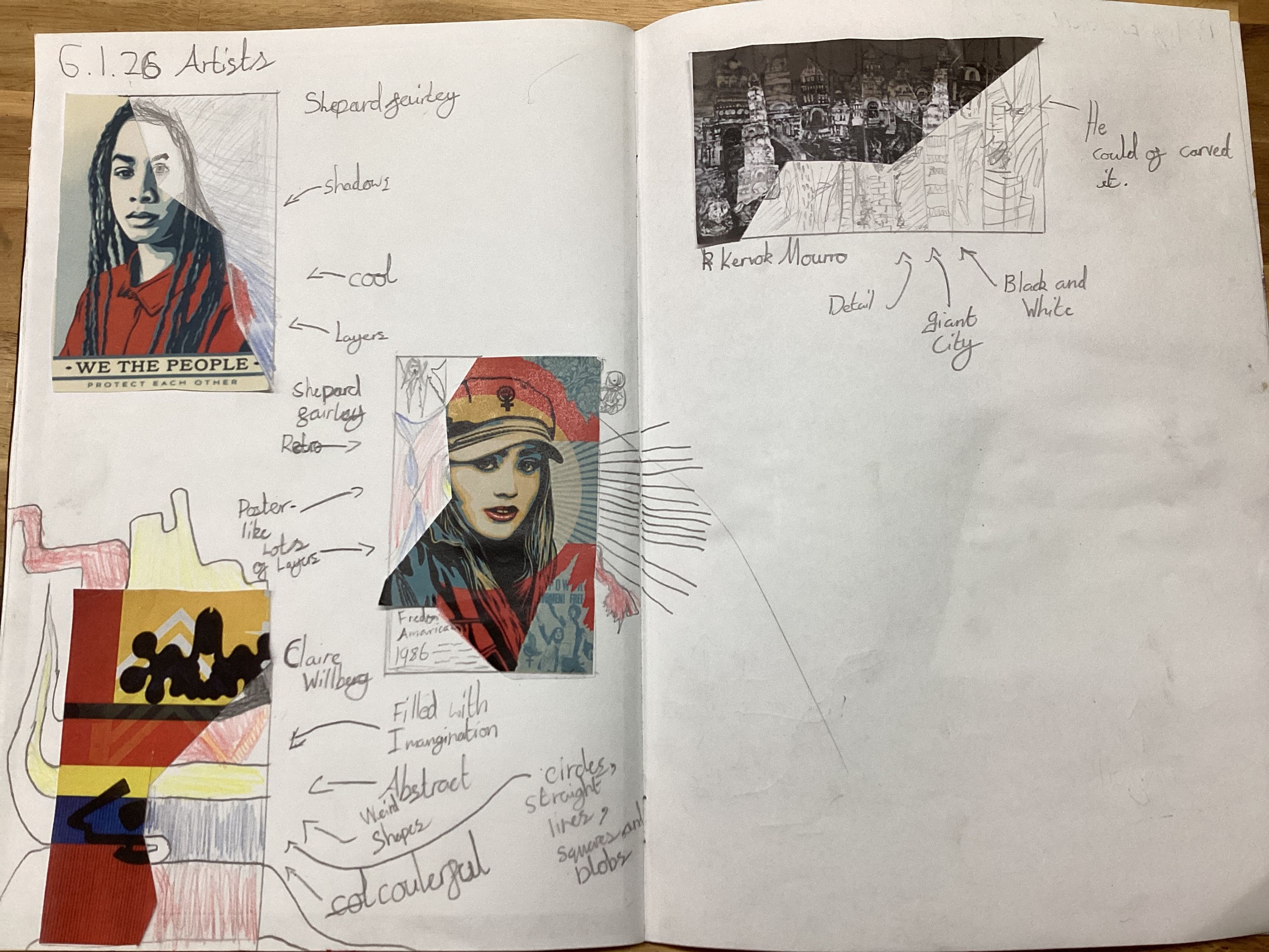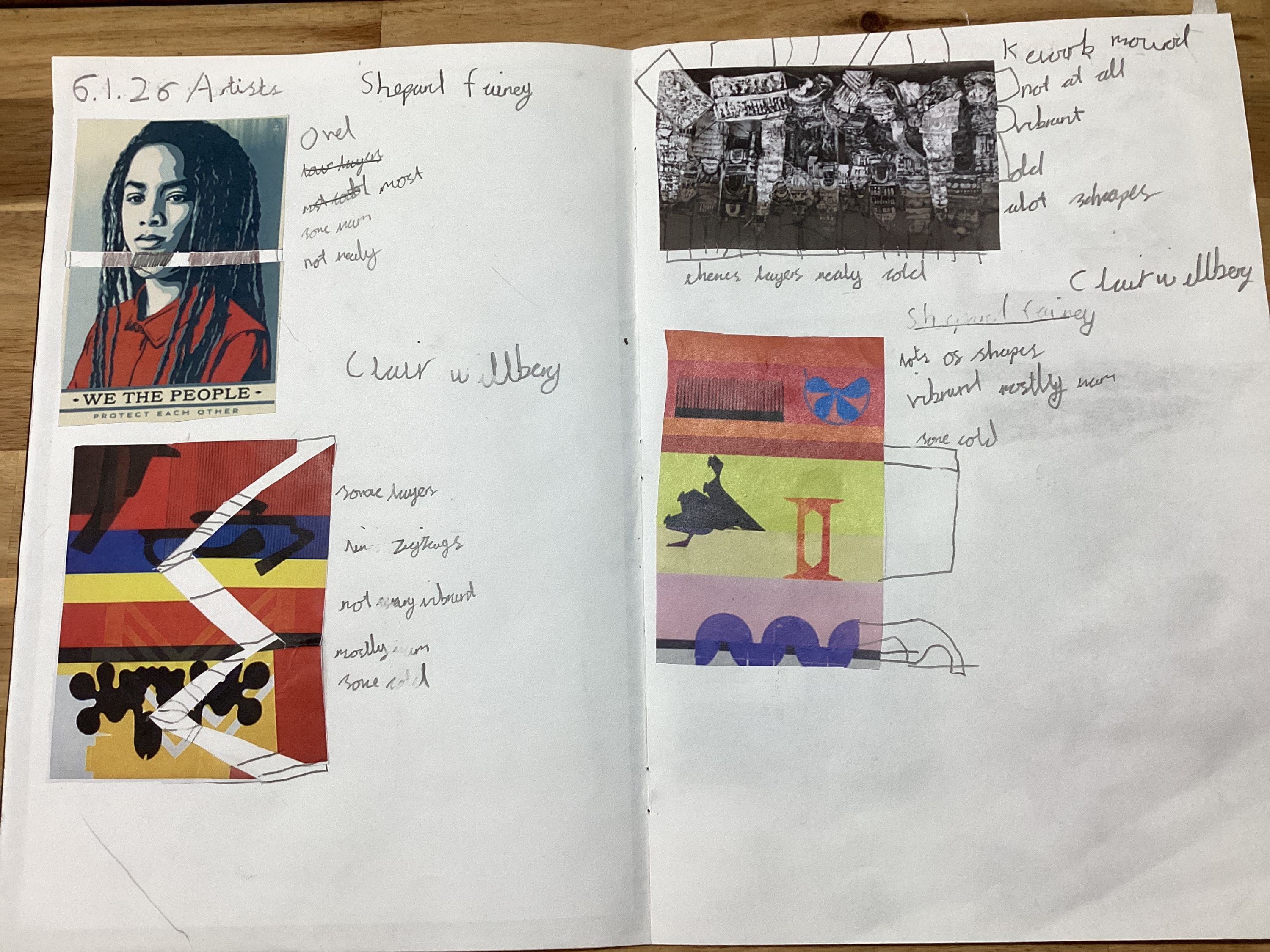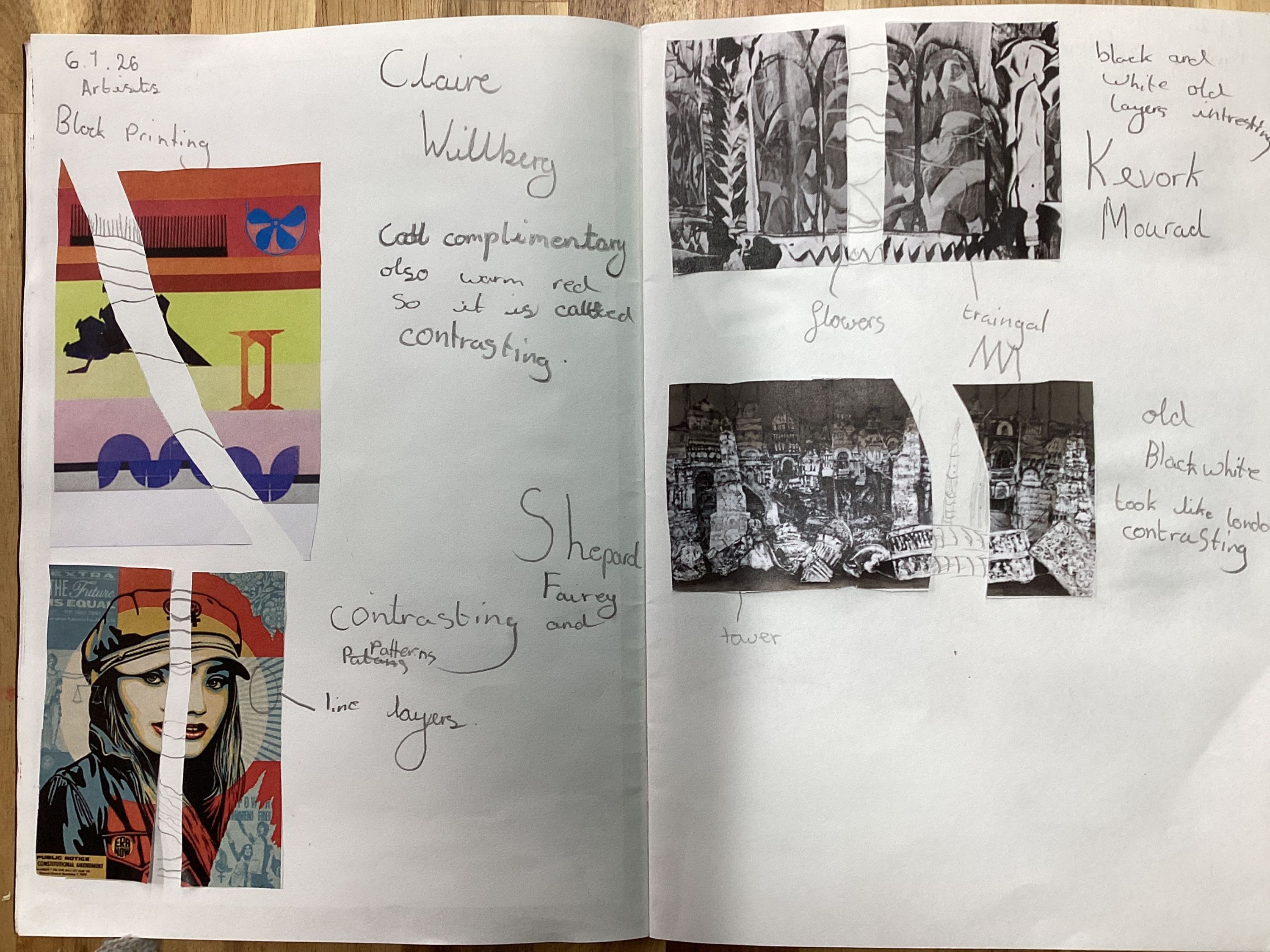 In this learning experience, we will be taking inspiration from the artists Claire Willberg, Kevork Mourad and Shepard Fairey. We will then practise block printing by carving out a design on foam and experimenting on a range of materials. Finally, we will create our final design and block print onto a wooden square as our final product.